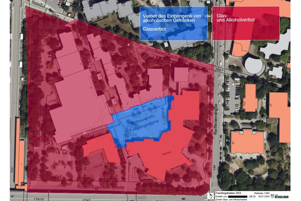 Für den Veranstaltungstag hat die Stadt im Bereich um den Rathausplatz herum als Veranstaltungsort des Faschingstreibens eine sogenannte Allgemeinverfügung erlassen. Damit es am 14.2.2026 von 13 bis 22 Uhr dort verboten, alkoholische Getränke in der Öffentlichkeit außerhalb der Schankbereiche das mitzuführen und zu konsumieren. Außerdem gilt für die Dauer des Faschingstreibens auf der Veranstaltungsfläche ein Verbot von Glasflaschen und anderen Glasbehältern.